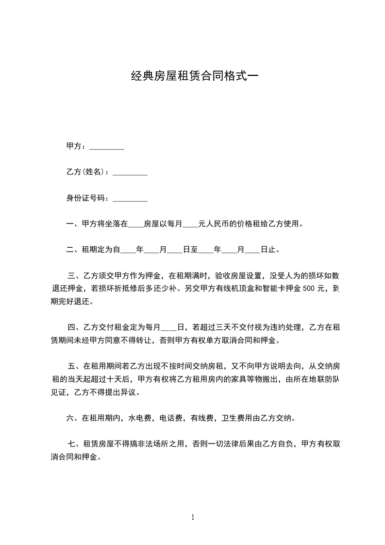 1.甲方应自乙方按合同交纳租房押金和租金之日起,按合同向乙方提供室内设施完好的房屋,否则,按本合同