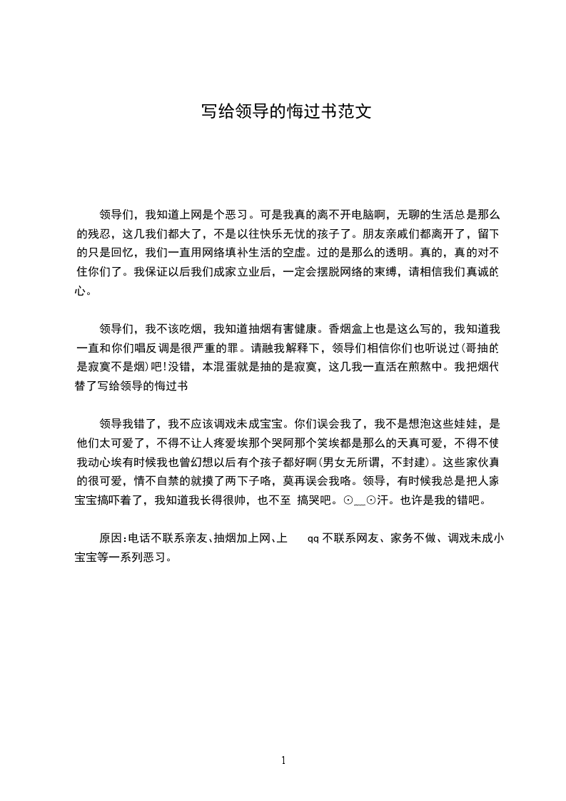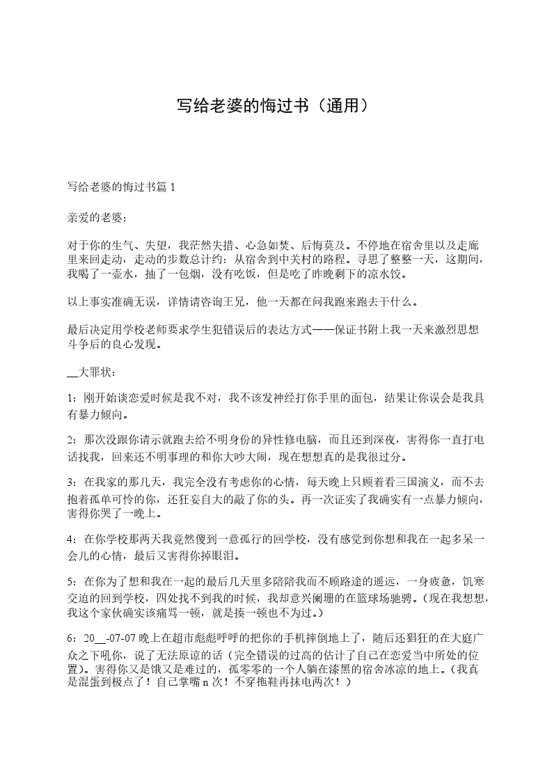 4、作为一名丈夫,我对不起妻子;作为一名儿子,我对不起年迈且体弱多病的父母:看到她们担惊受怕的样子,真是内疚,悲痛。为此,我保证在今后的工作、学习、生活当中,做到: