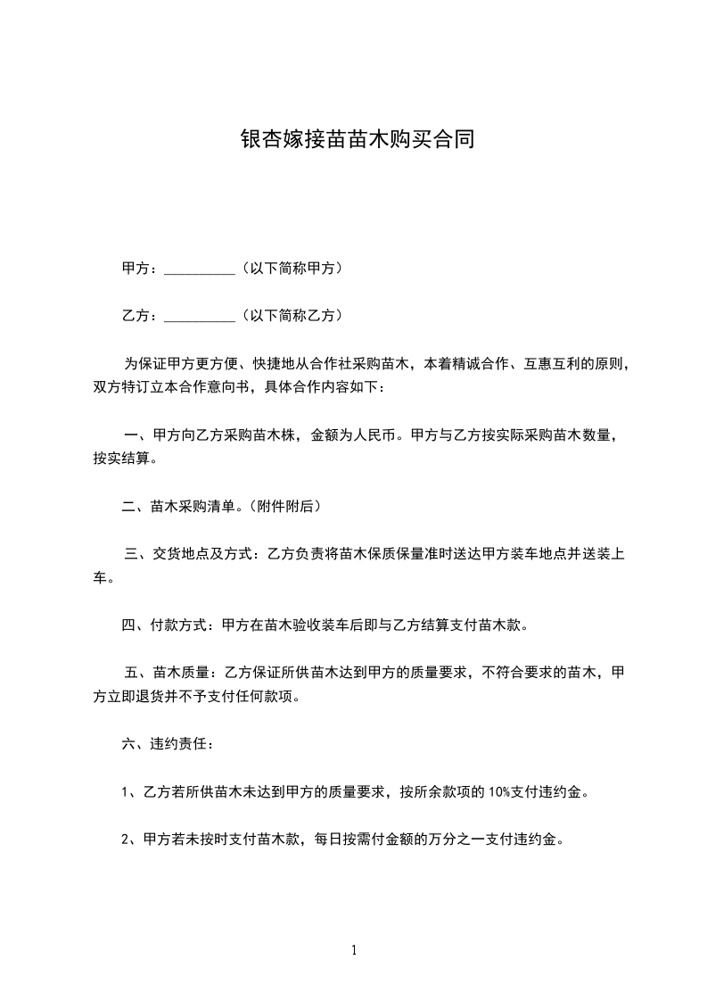 1.甲方按照乙方提出的要求,提供如下____________苗木:
