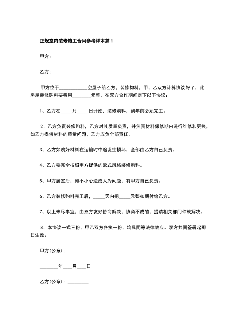 1、乙方在_____月_____日开始,装修购料,到年前必须完工。