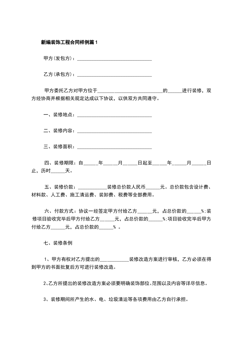 五、装修价款:____________装修总价款人民币______元。总价款包含设计费、材料款、人工费、施工清运费、装卸费、税费等全部费用。
