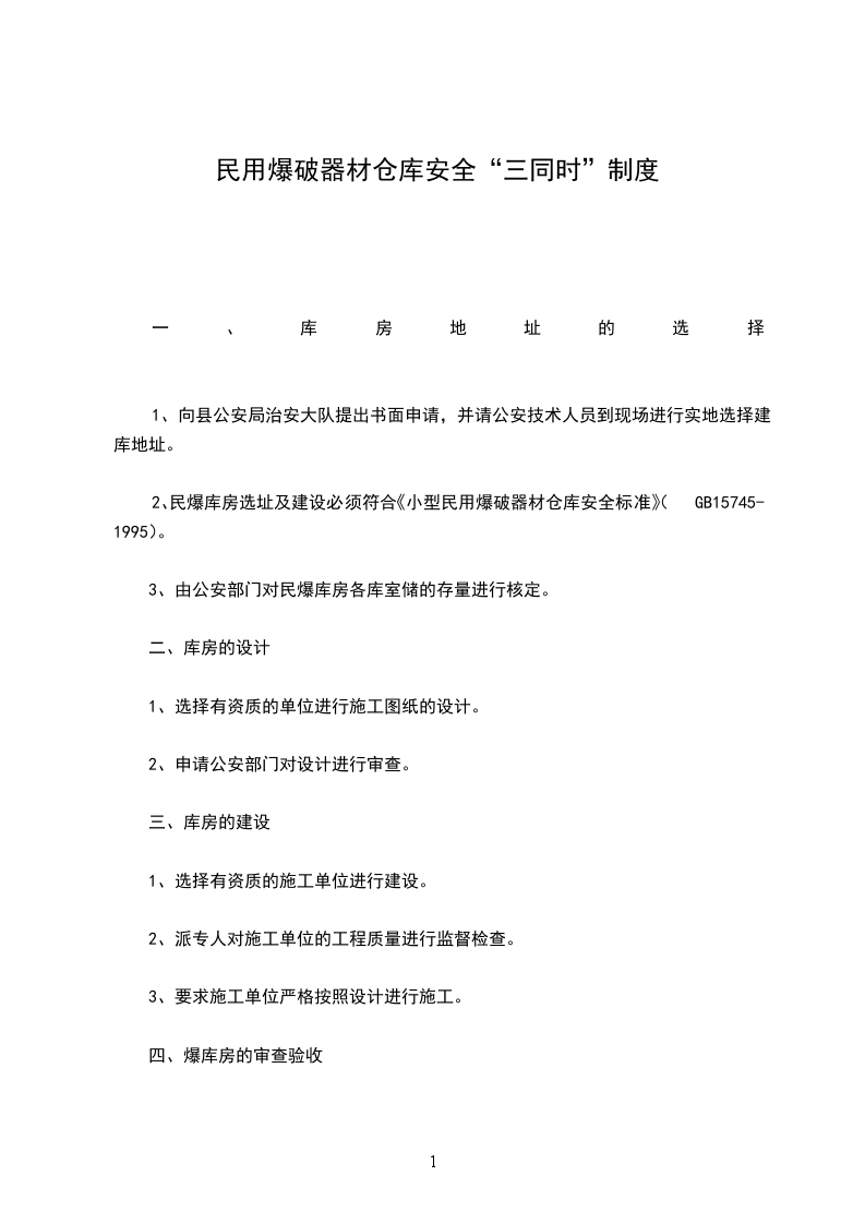 2、民爆库房选址及建设必须符合《小型民用爆破器材仓库安全标准》(GB15745-1995)。
