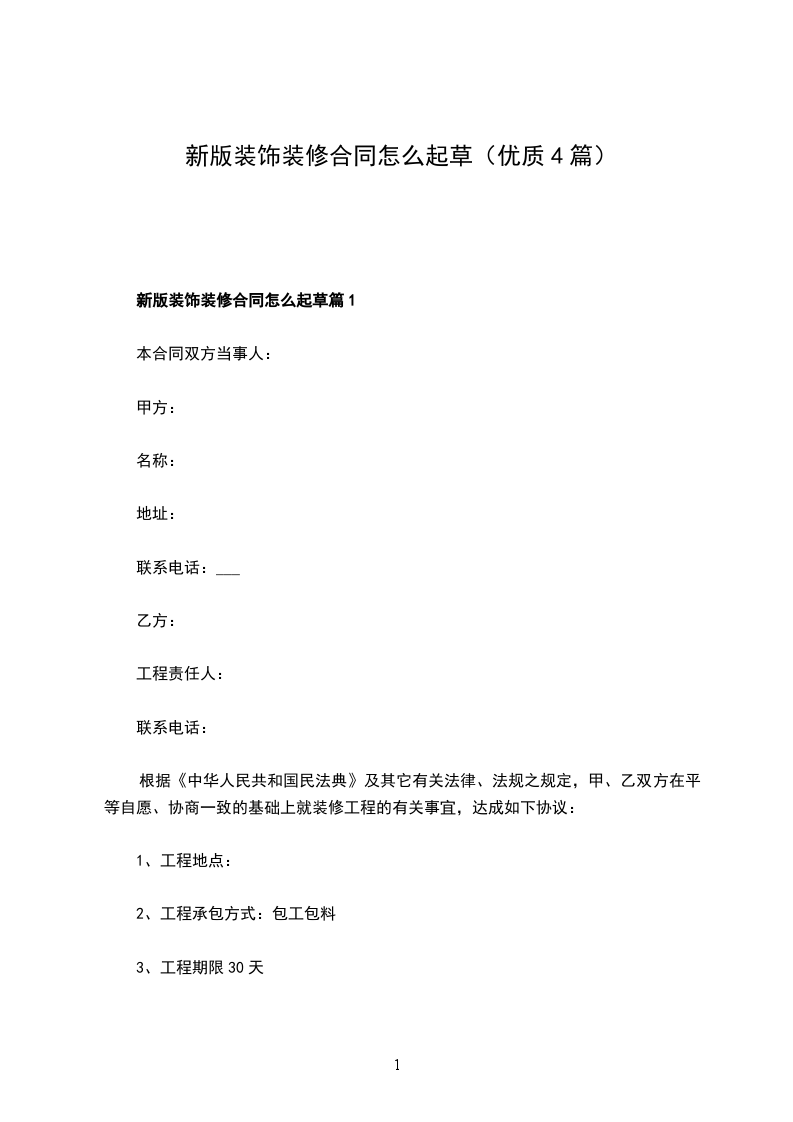 新版装饰装修合同怎么起草篇1