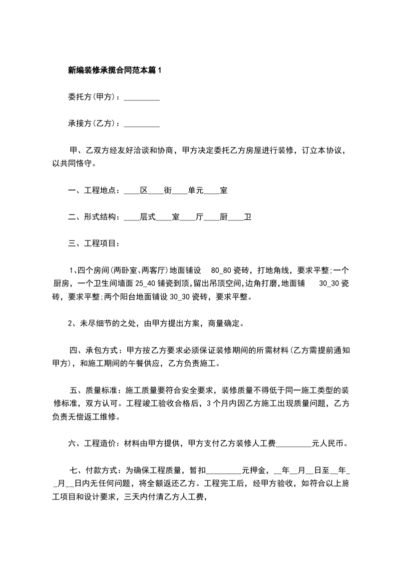 六、工程造价:材料由甲方提供,甲方支付乙方装修人工费_________元人民币。