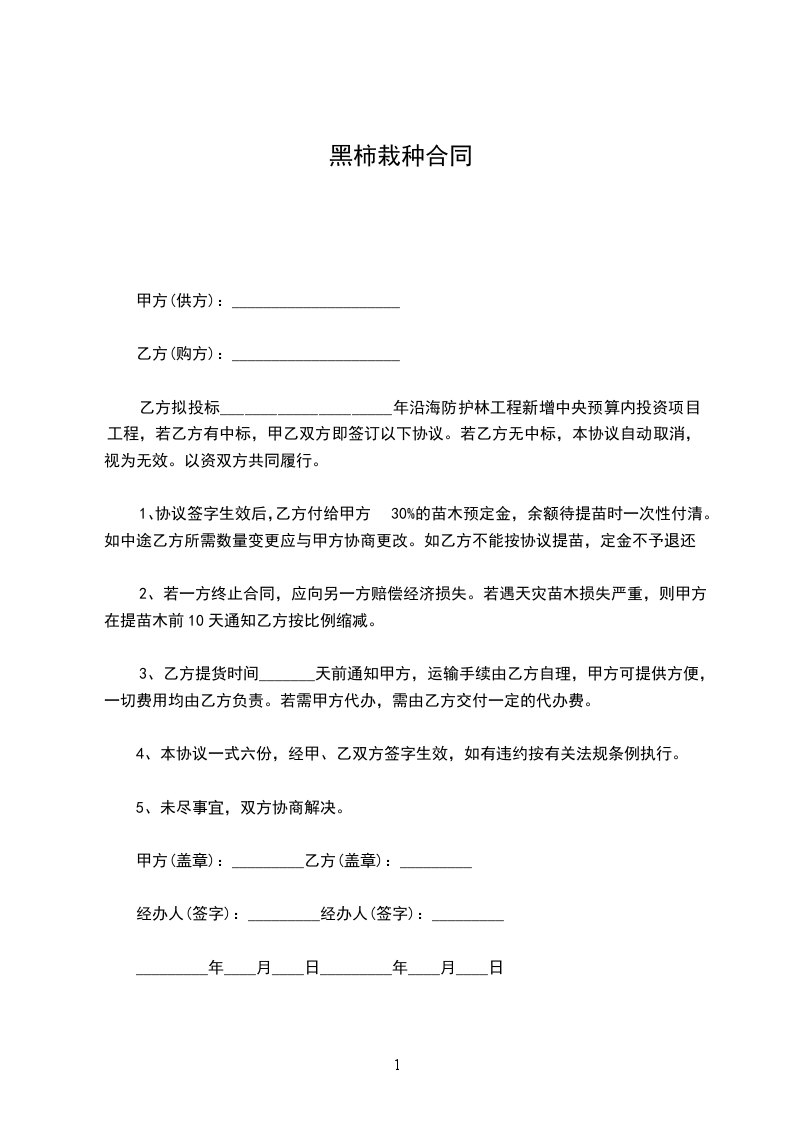 黑柿买卖合同