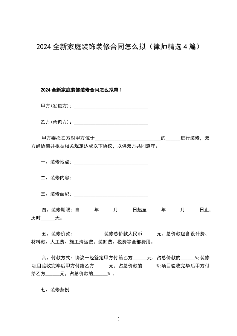 2024全新家庭装饰装修合同怎么拟篇4