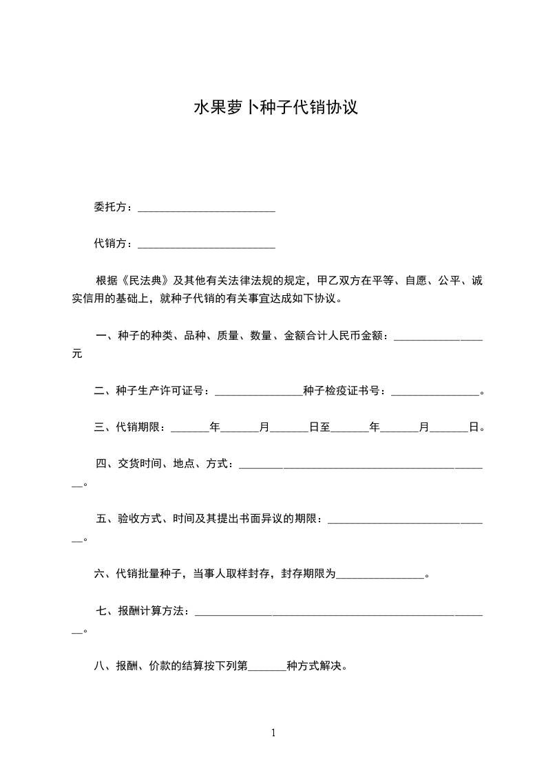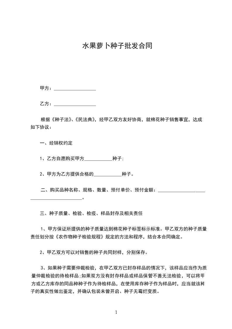 根据《中华人民共和国民法典》、《中华人民共和国种子法》及有关规定,为明确双方的权利义务,经双方协商一致签订本合同。
