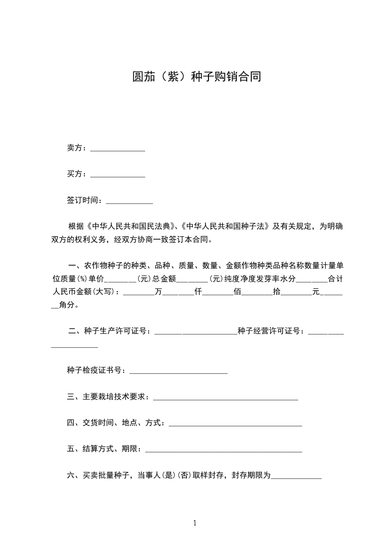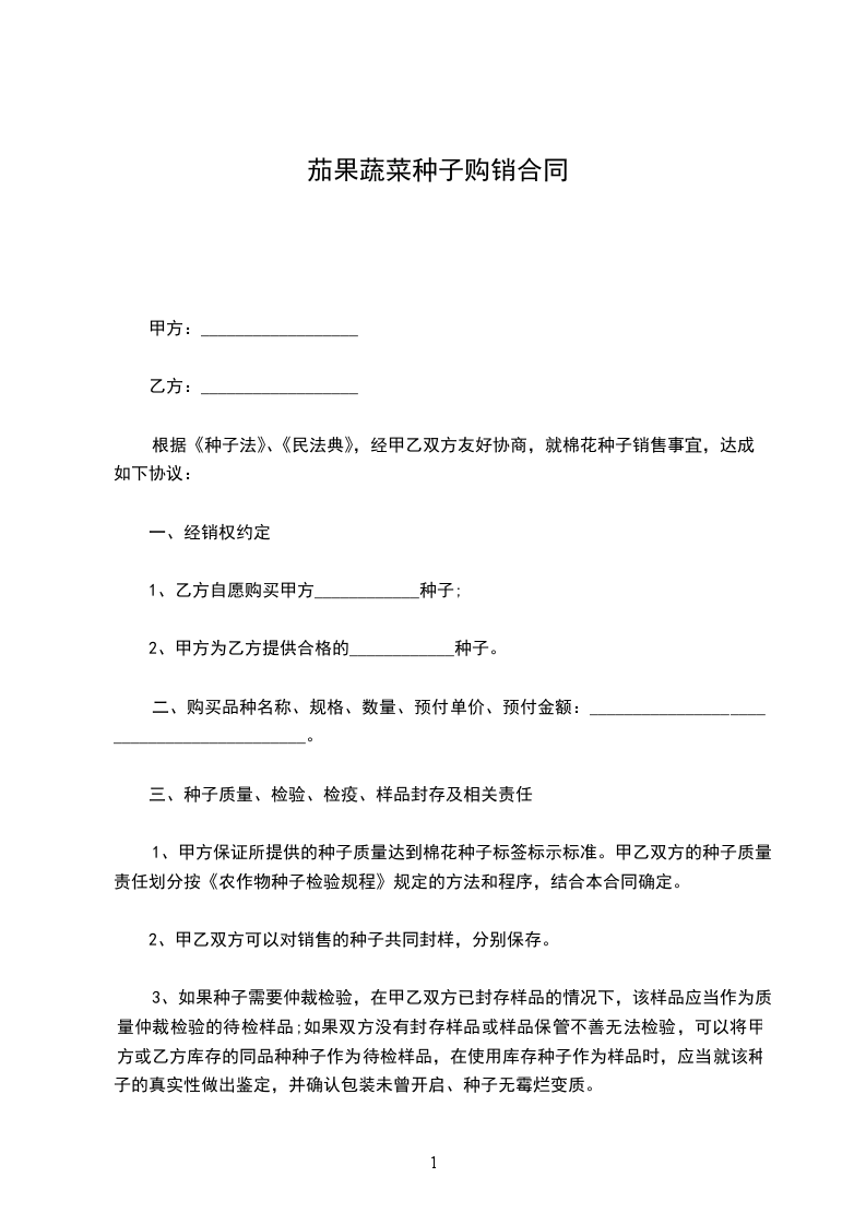 茄子种子购销合同