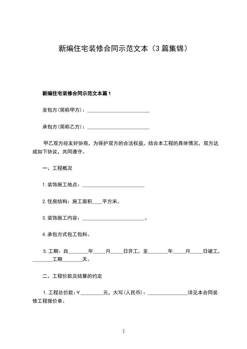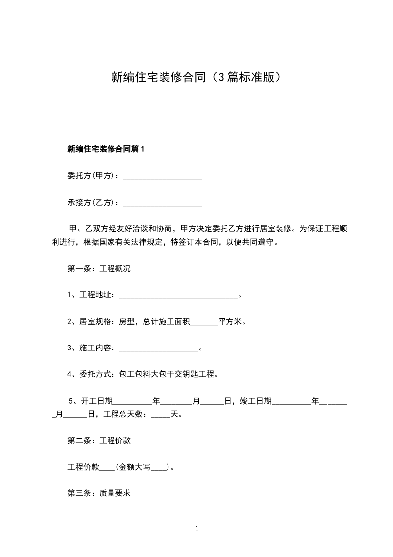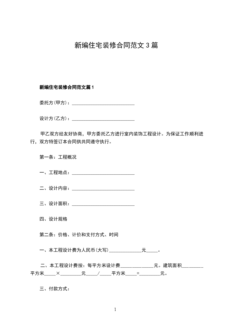 新编住宅装修合同篇1