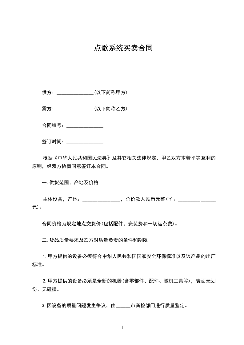 1.因设备的质量问题发生争议,由市质量监督局或其指定的质量鉴定单位进行质量鉴定、设备符合质量标准的,鉴定费由乙方承担,设备不符合质量标准的,鉴定费由甲方承担。