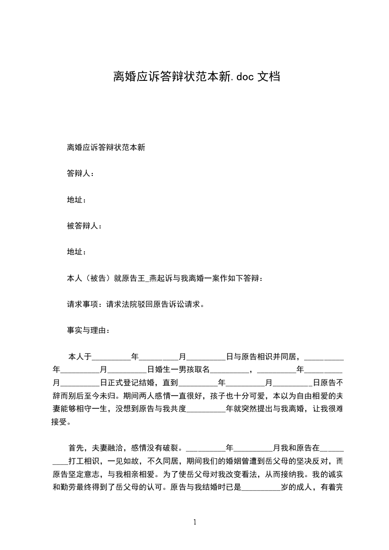 本人(被告)就原告王*燕起诉与我离婚一案作如下答辩:
