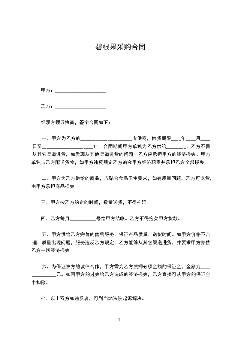 为进一步规范学校食品采购行为,确保食品采购做到公平、公正、公开和采购食品质量卫生安全,价格合理,根据平等自愿和诚实信用的原则,经甲、乙双方协商签订_____________________合同,供甲、乙双方共同遵守。