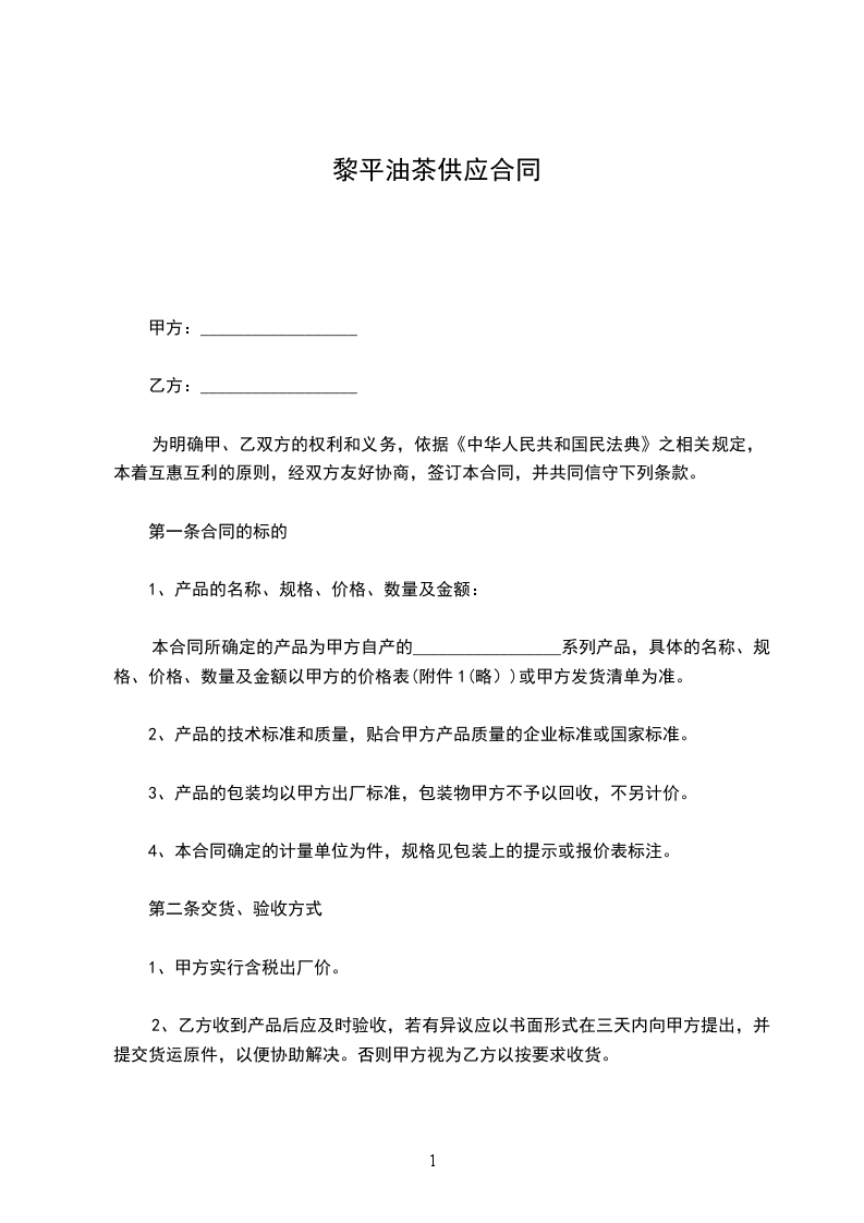 为明确甲、乙双方的权利和义务,依据《中华人民共和国民法典》之相关规定,本着互惠互利的原则,经双方友好协商,签订本合同,并共同信守下列条款。