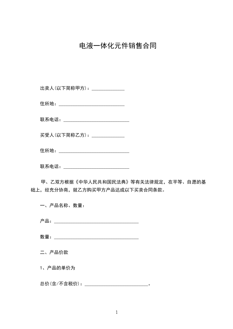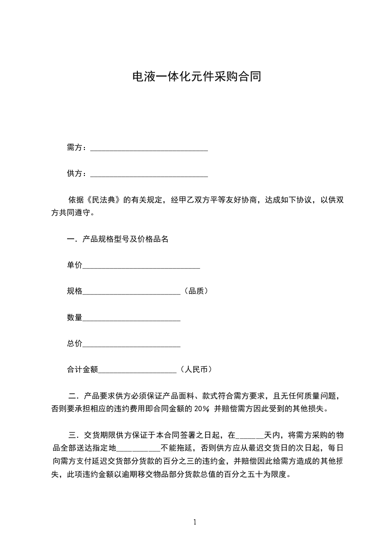 电液一体化元件供货合同