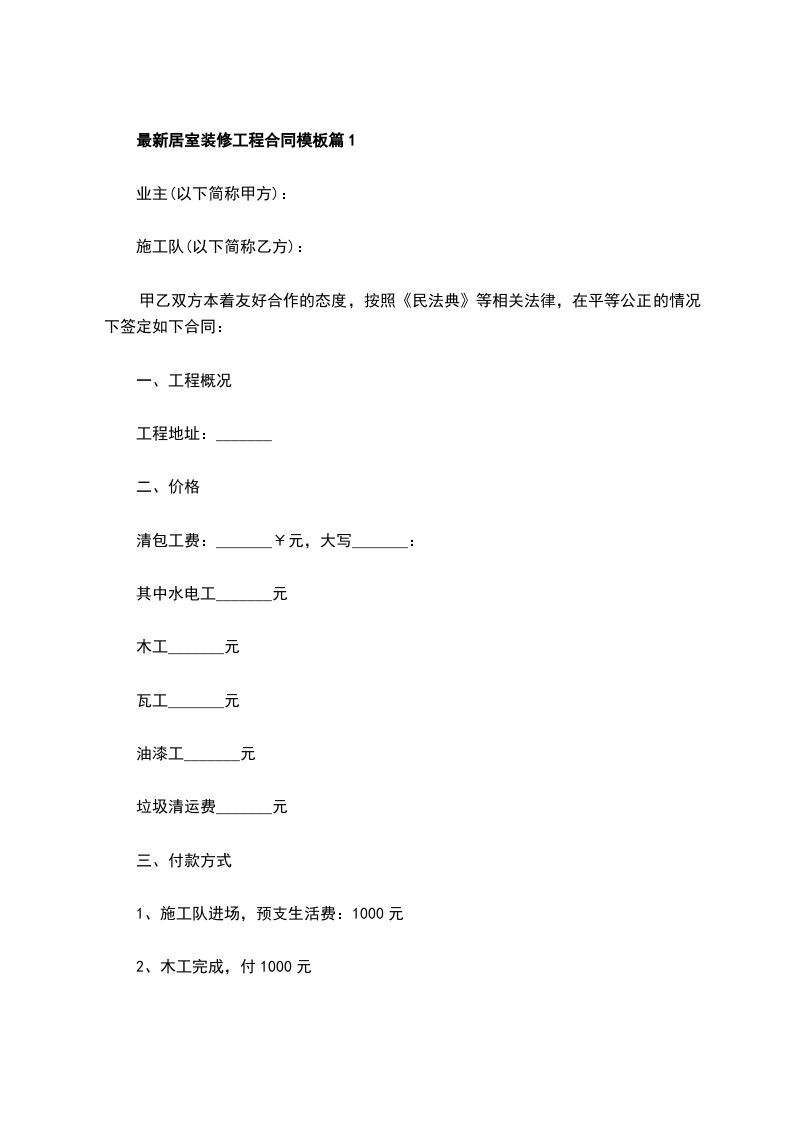 最新居室装修工程合同模板篇1