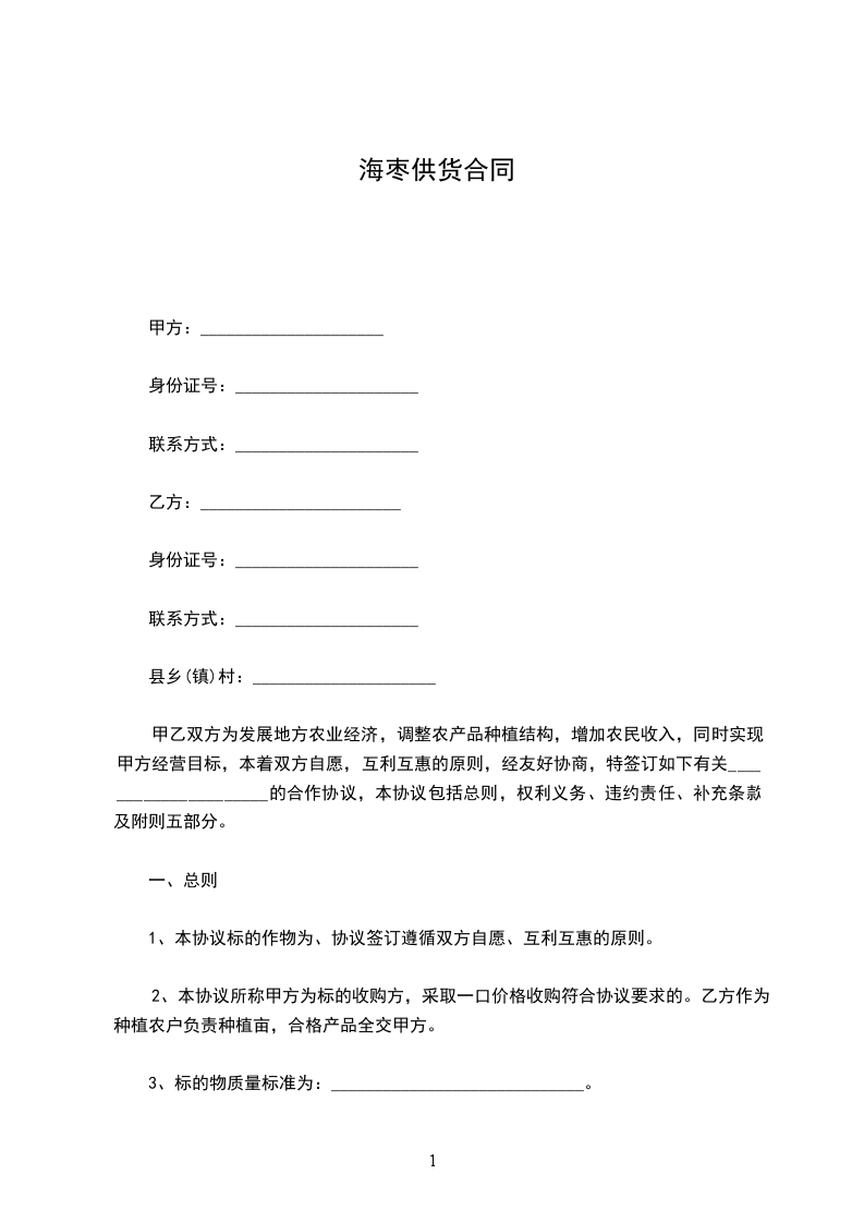 1、本协议标的作物为、协议签订遵循双方自愿、互利互惠的原则。