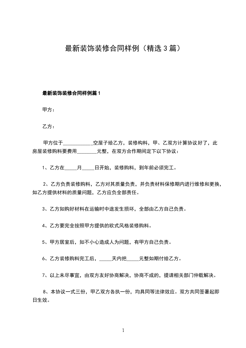 最新装饰装修合同样例篇1