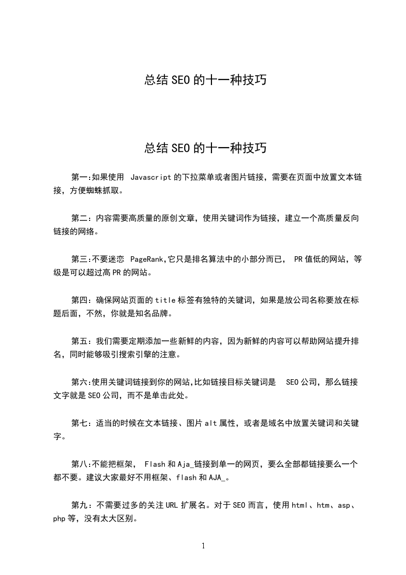 总结SEO的十一种技巧
