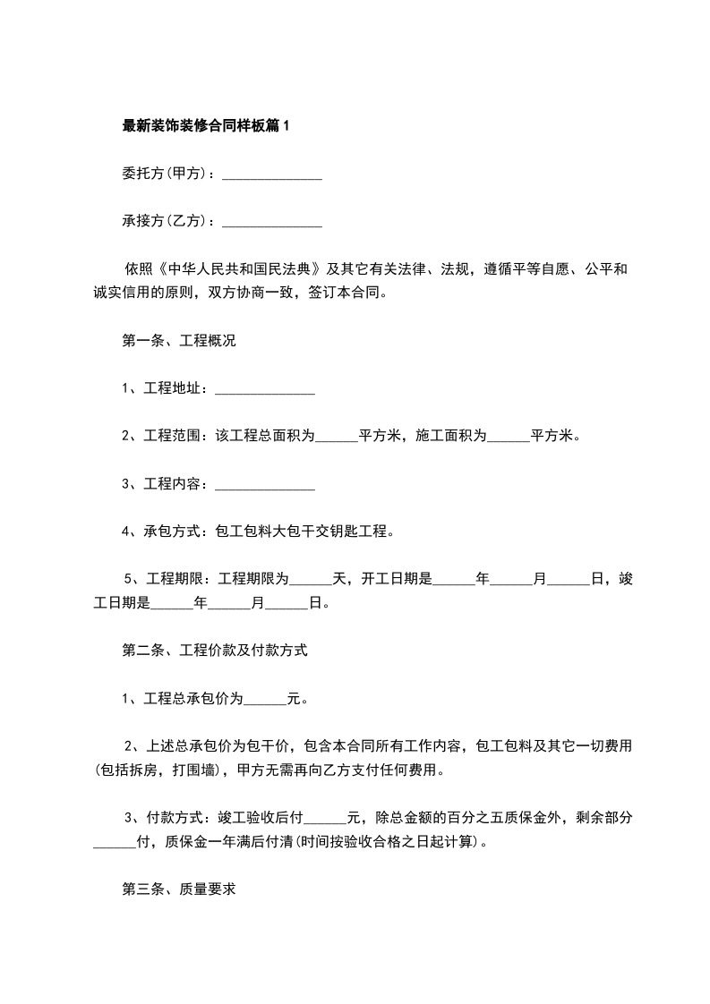 1.工程内容及单价按甲乙双方认定的装饰实际项目计算