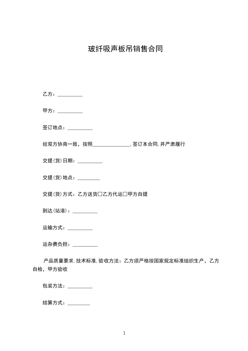 玻纤吸声板吊交易合同