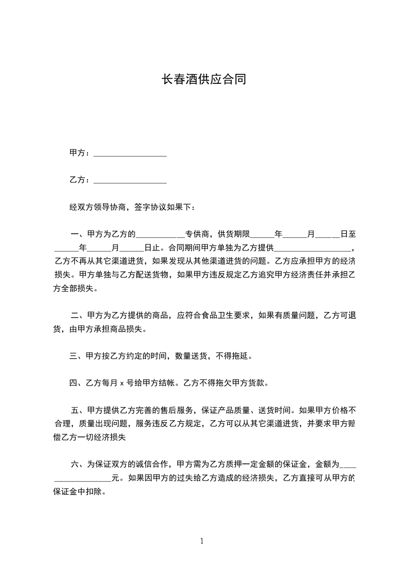 1、为保证甲、乙双方经营利益和有效销售甲方的产品,甲方提供__________________元人民币作为诚信铺底金,合同到期或终止时乙方必须将诚信铺底金全额支付给甲方。