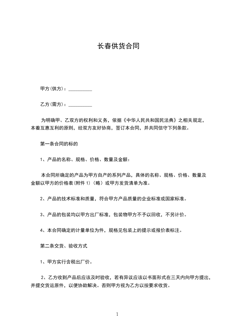 5、甲方提供不超过生产日期______天的产品给乙方,否则乙方有权拒收。
