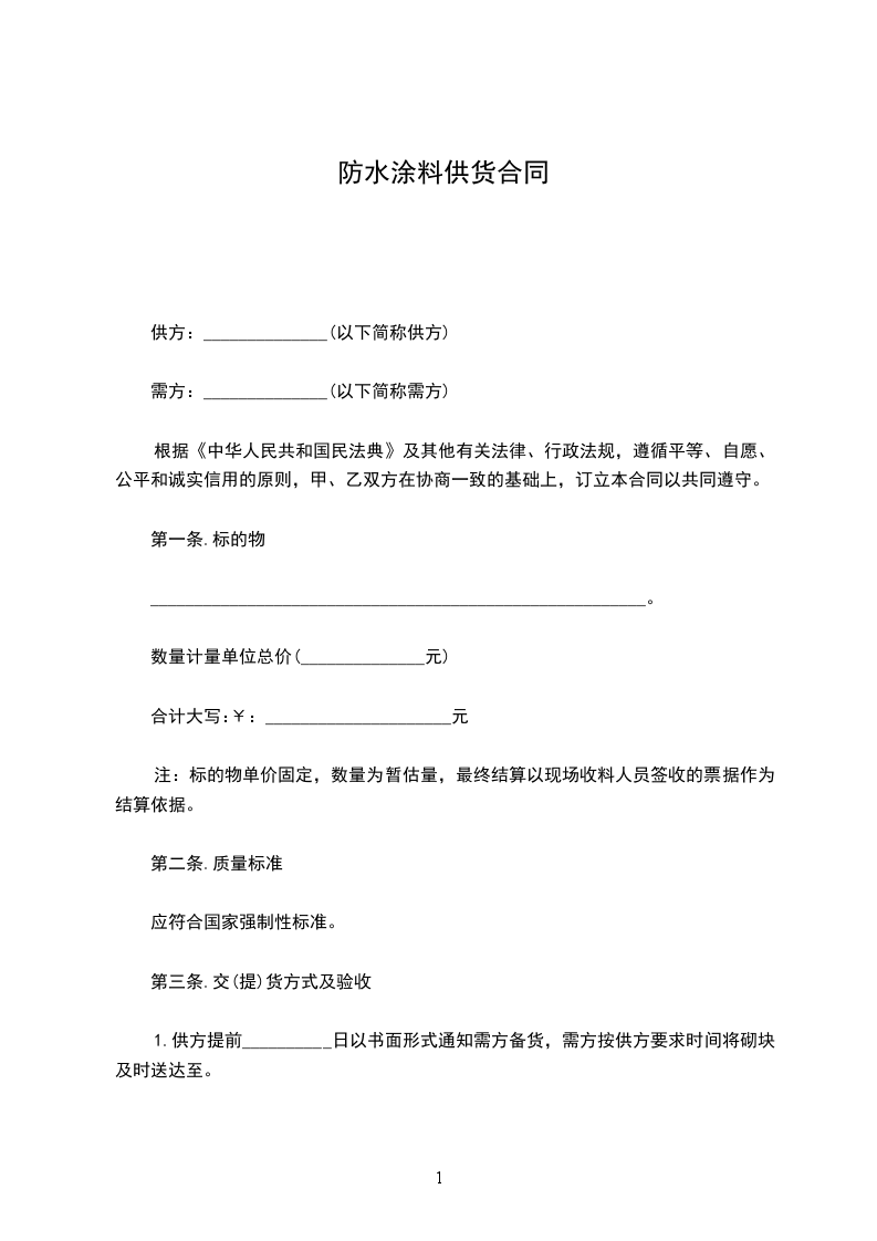 注:标的物单价固定,数量为暂估量,最终结算以现场收料人员签收的票据作为结算依据。