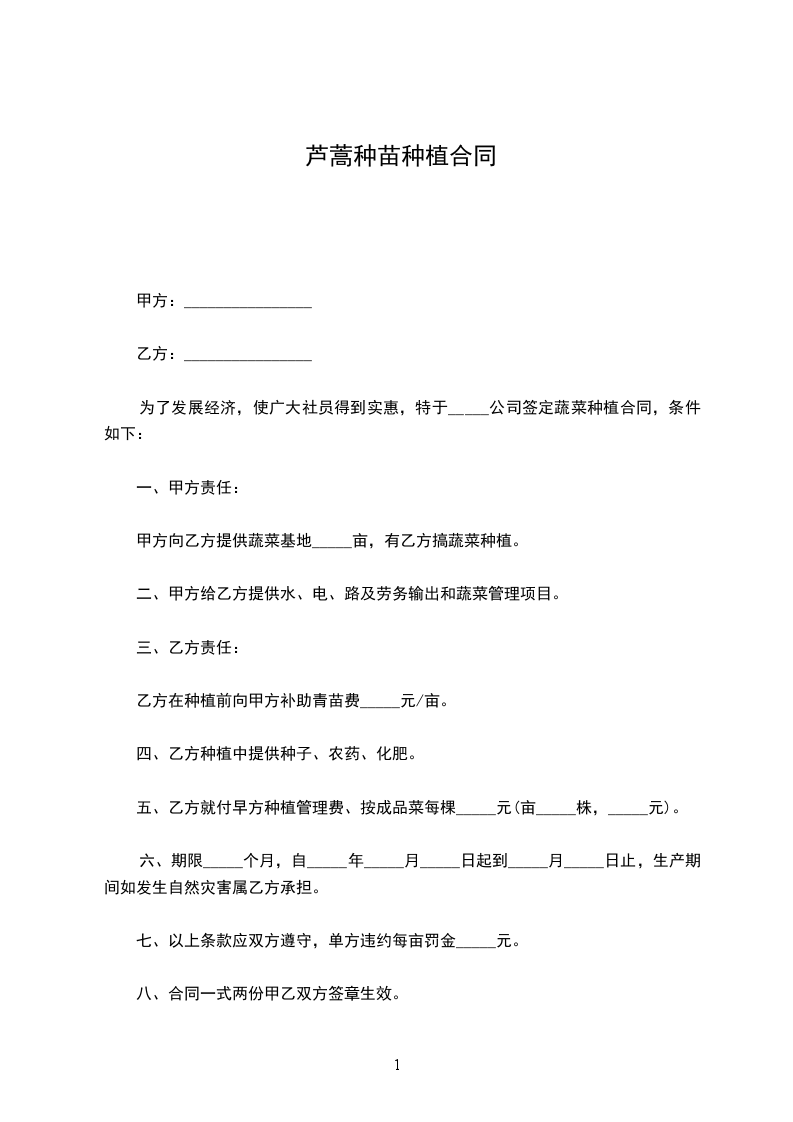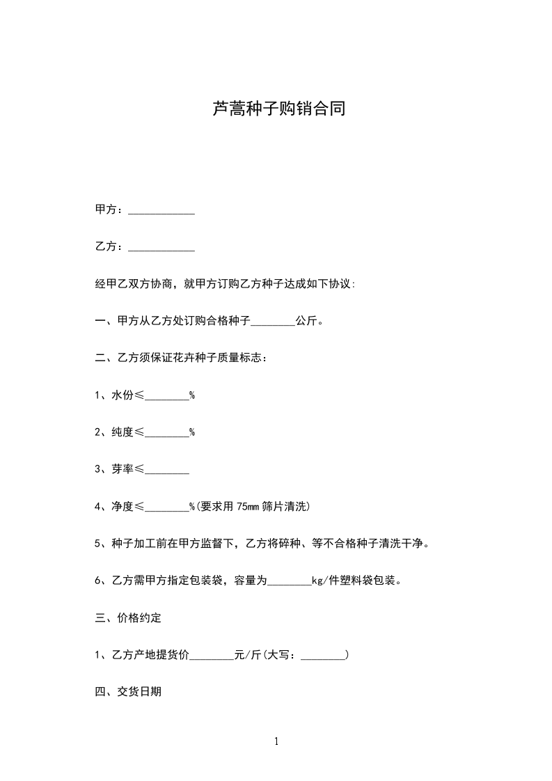 一、乙方生产负责人__________负责(地区)的种植生产。甲方负责向______________提供优质种子及种植生产的技术咨询和收购。
