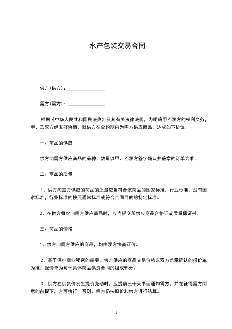 水产包装交易合同