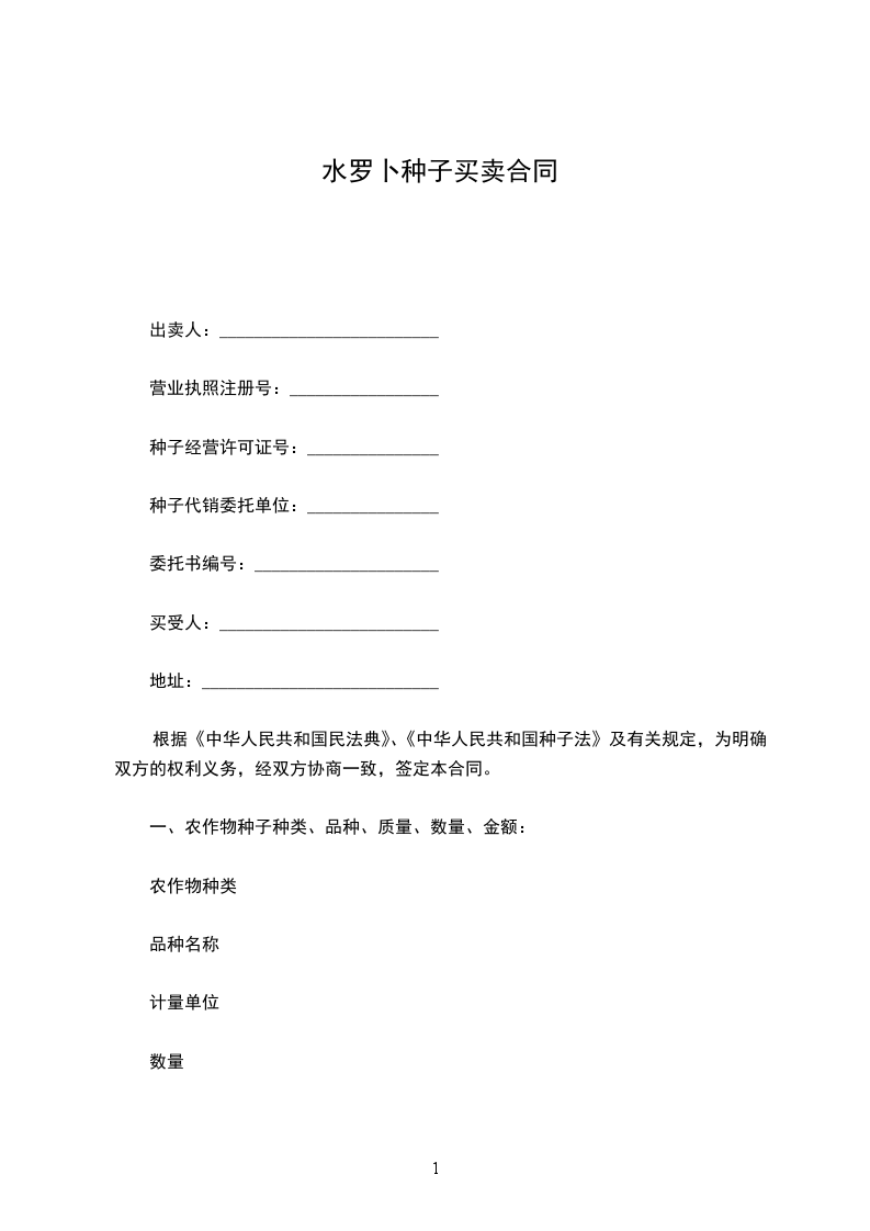 第一条:甲方向乙方有偿提供______________种子_____________________公斤(名称牌号商标生产单位规格等级计量单位),每公斤______________元(大写:____________________________),合计元(大写:_____________________)。
