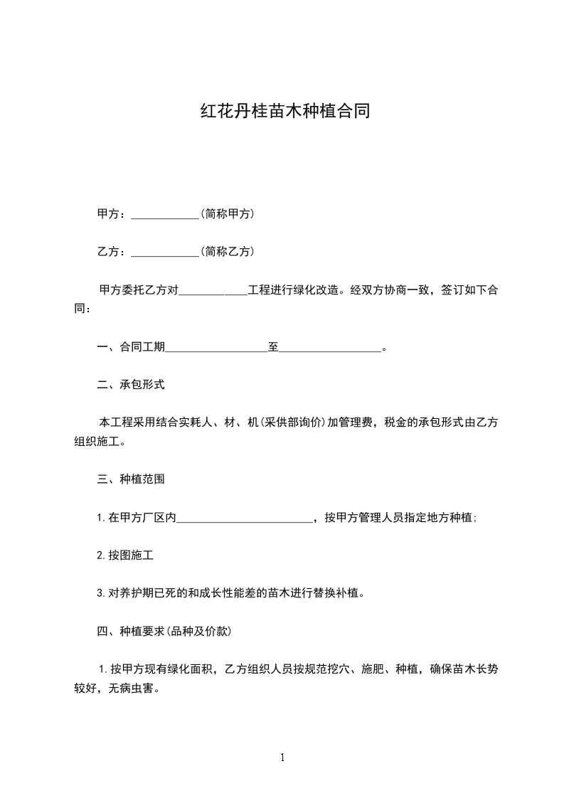 1.按甲方现有绿化面积,乙方组织人员按规范挖穴、施肥、种植,确保苗木长势较好,无病虫害。