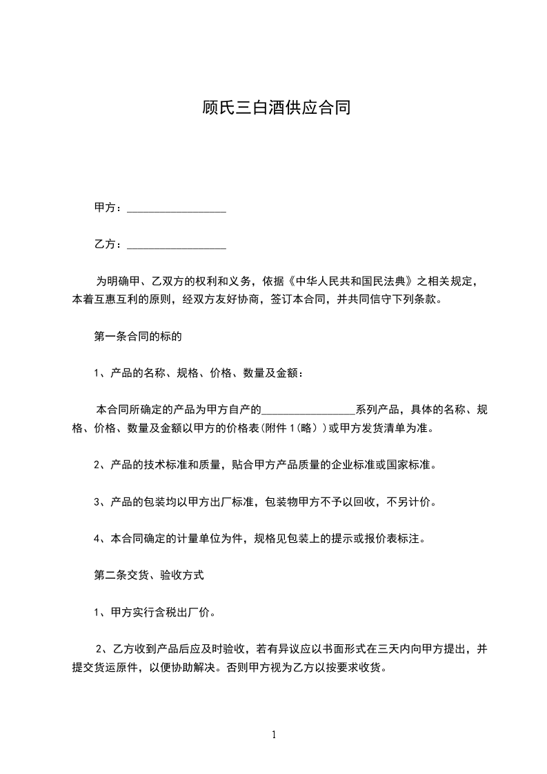1、甲方有向乙方供给质量合格产品的义务。