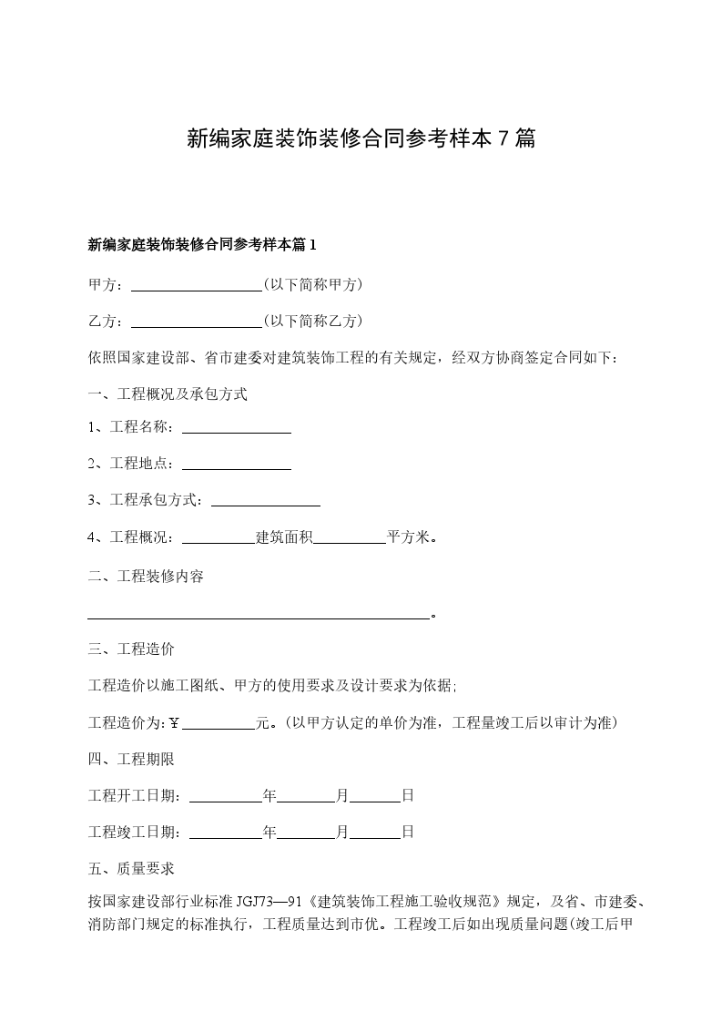 新编家庭装饰合同书篇1