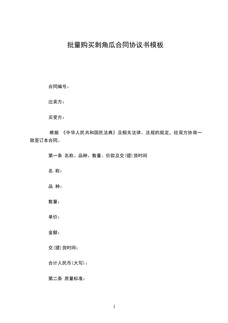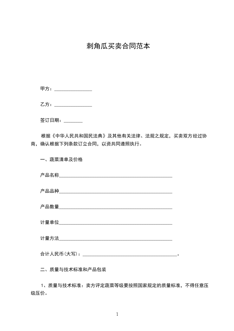 1.甲方如无故拖延乙方上交蔬菜时间,或故意压级压价,除应赔偿乙方的损失外,应向乙方偿付违约金_________元。