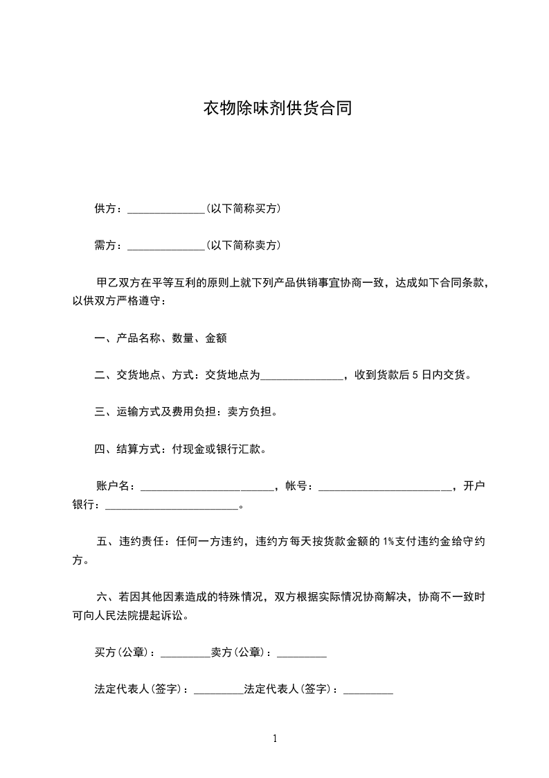 五、违约责任:任何一方违约,违约方每天按货款金额的1%支付违约金给守约方。