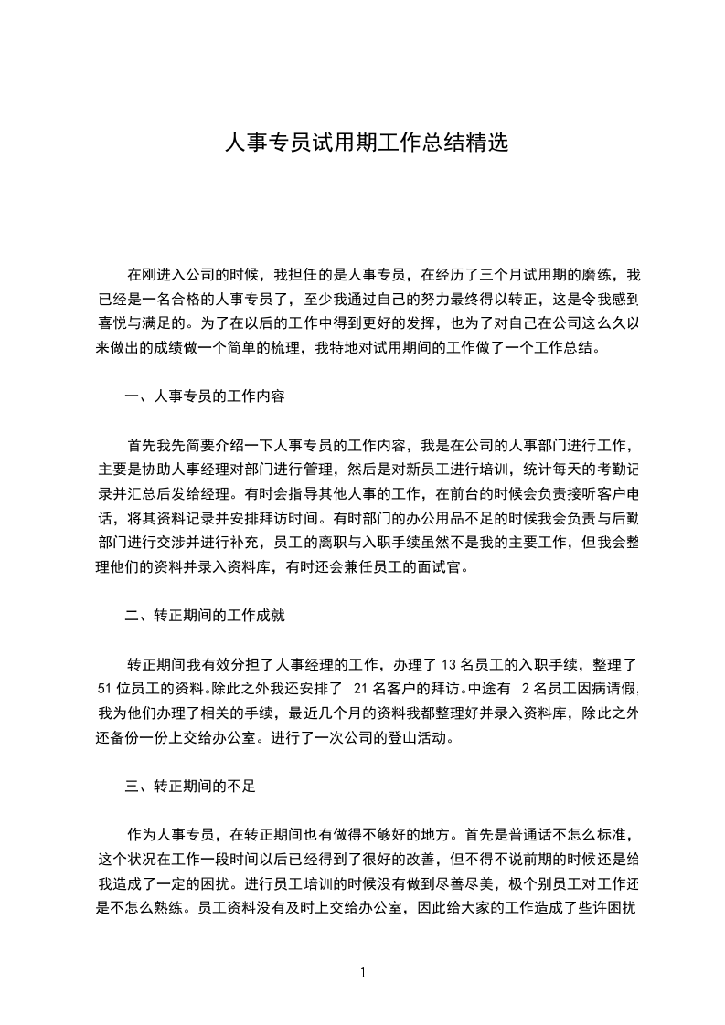 短短的两个月时间过去了,在领导及同事的指导下,我努力的学习并认真做好每项人事工作,努力的提高自己的工作能力。通过这些努力,我还是有很大的进步的。但是在学习和工作过程中,我还是出现一些问题和不足,这些也是我在日后的工作中需要逐步克服和加以完善的。我相信自己会在以后的工作过程中,充分发挥自己的优势,积极、主动、高效地完成各项工作,为公司的发展奉献自己的全部力量。