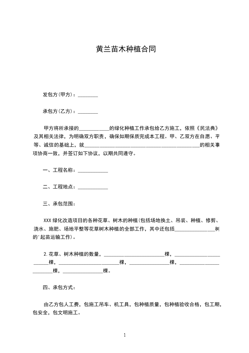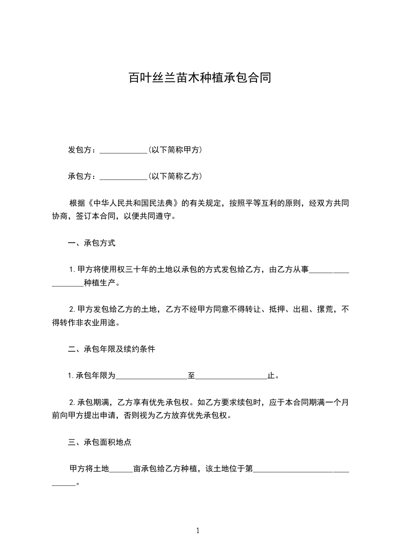 丝兰苗木种植合同