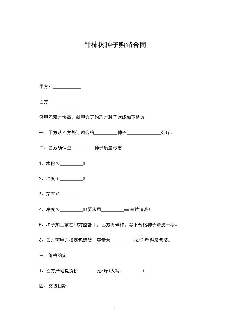 一、甲方从乙方处订购合格__________种子_______________公斤。