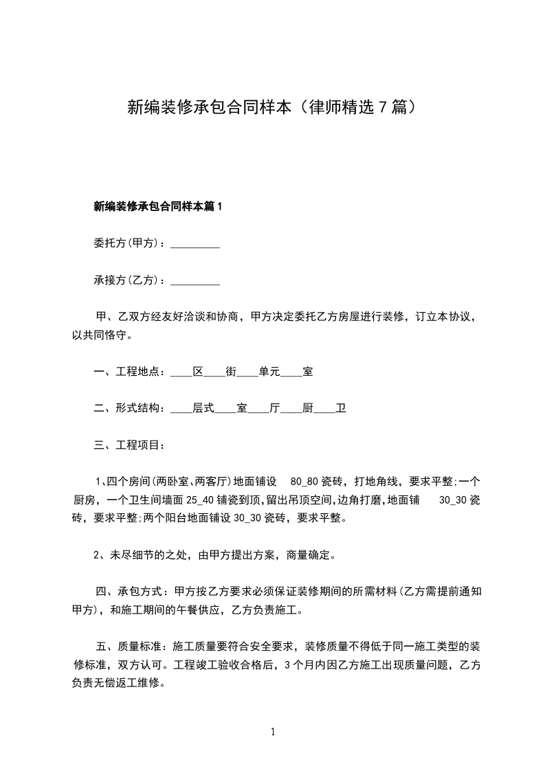 新编装修承包合同样本篇1