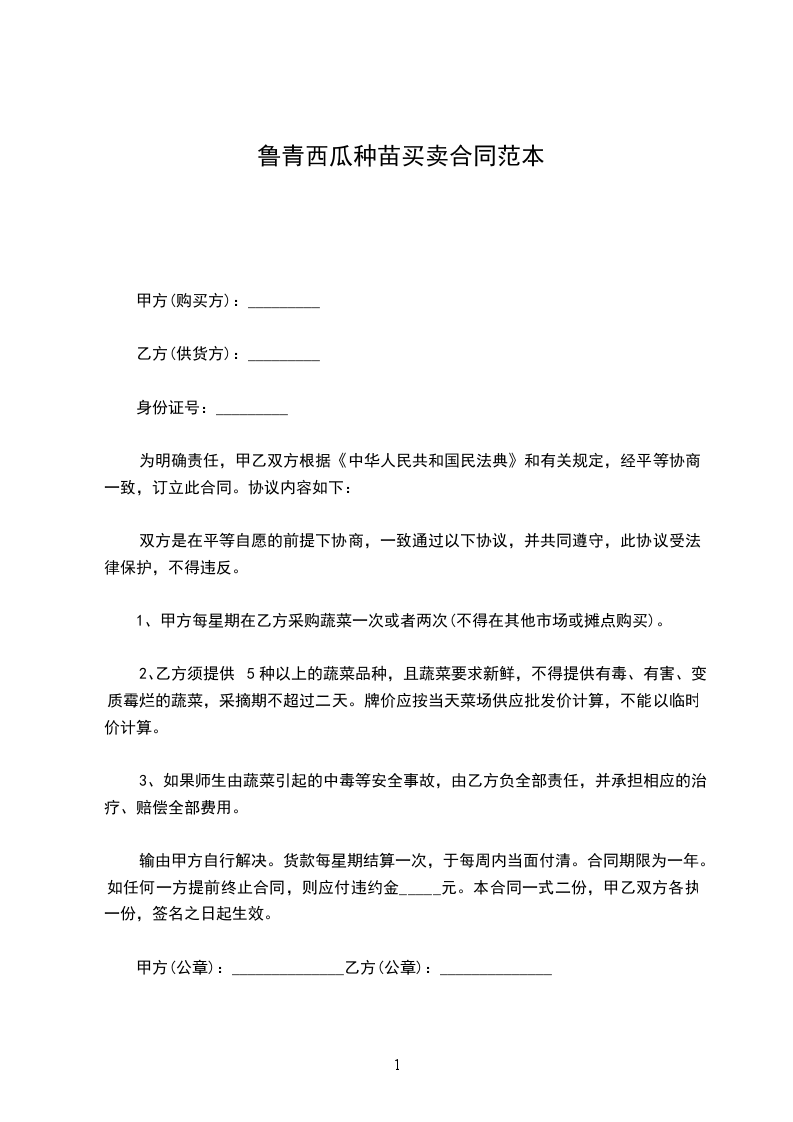 1、甲方每星期在乙方采购蔬菜一次或者两次(不得在其他市场或摊点购买)。