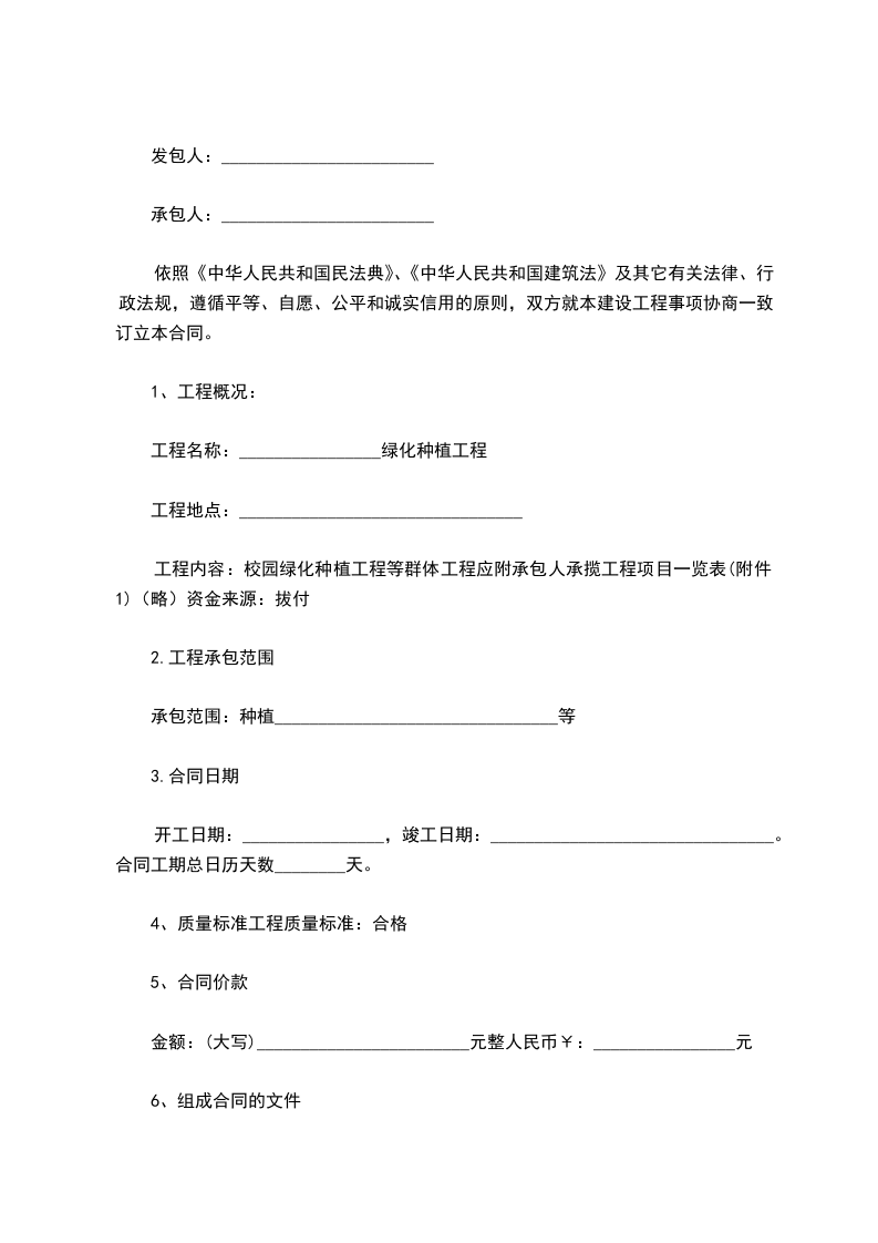 二、合同总价:合同总价为__________元,大写__________元整,最终以实际苗木定植数量为结算依据。