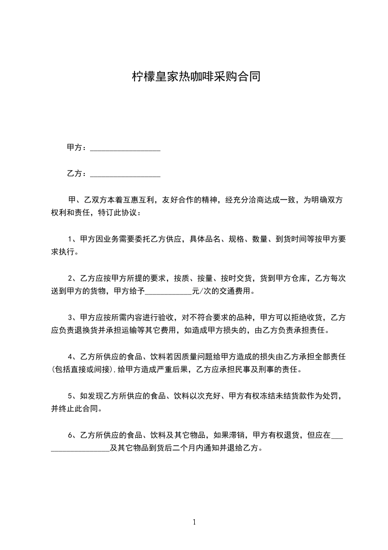 皇家咖啡供应合同