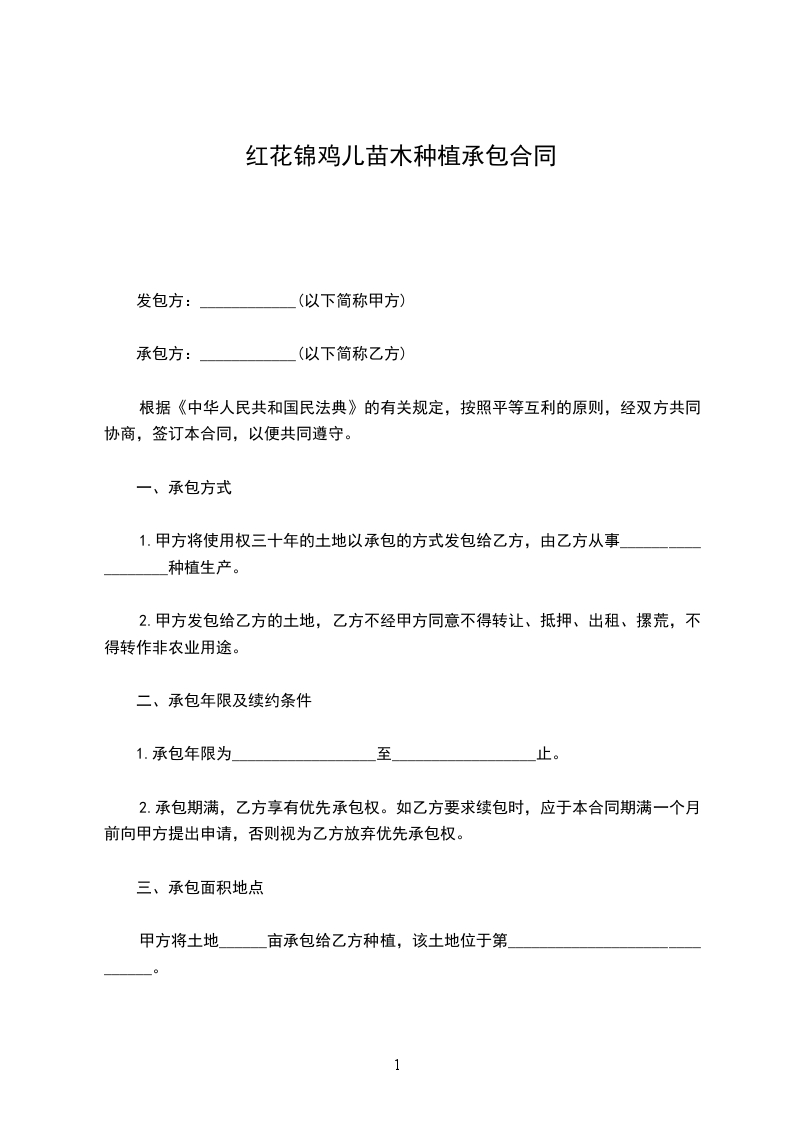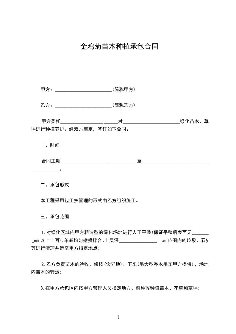锦鸡儿苗木种植合同