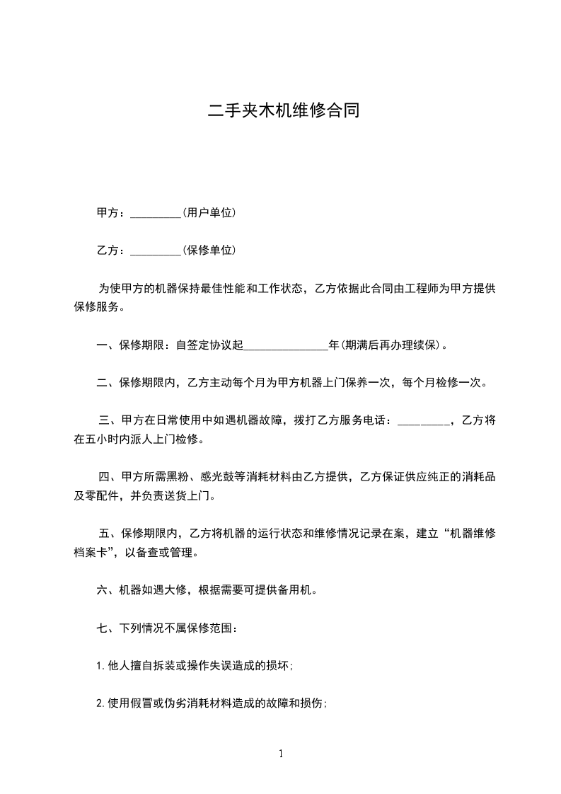 (5)卖方负责设备的终身维修并应继续提供优质的服务,储备足够的零配件备库,保修期满后,以_________的优惠价供应维修零配件,消耗品的供应应由双方另设协议决定。