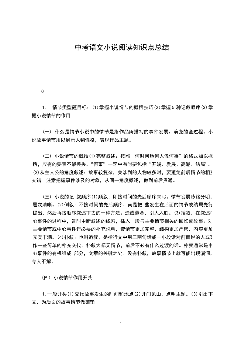 1、 情节类型题目标:(1)掌握小说情节的概括技巧(2)掌握5种记叙顺序(3)掌握小说情节的作用