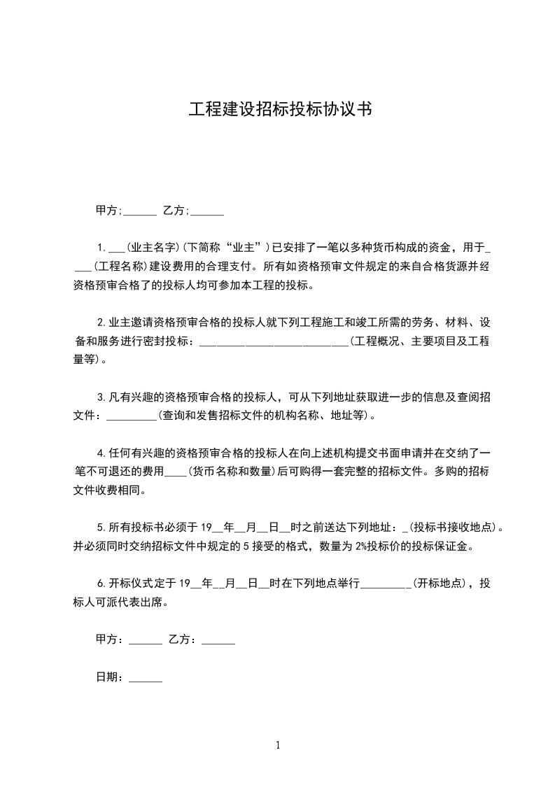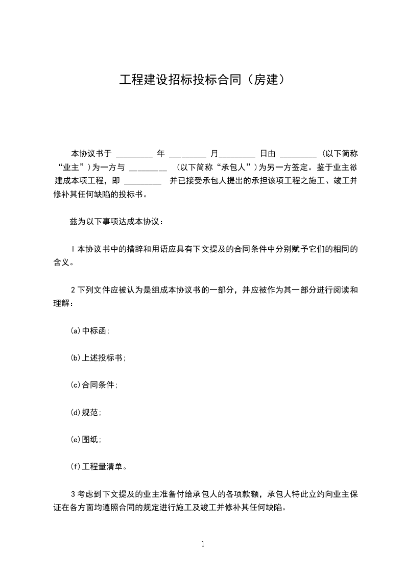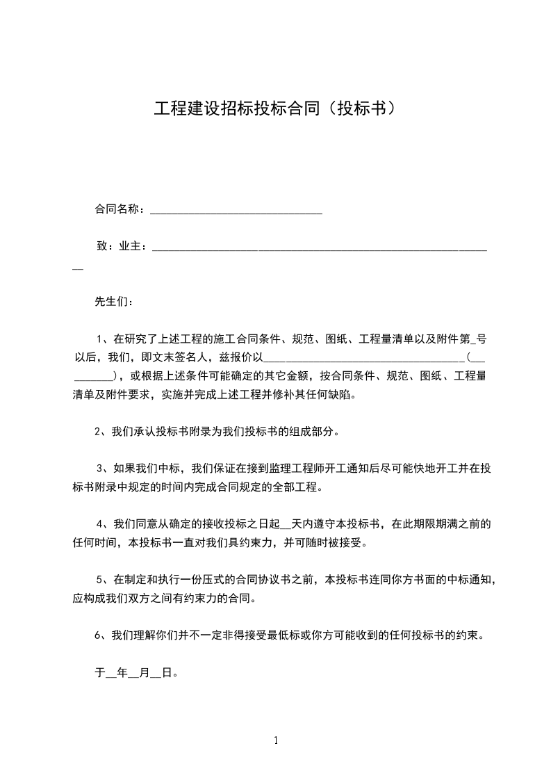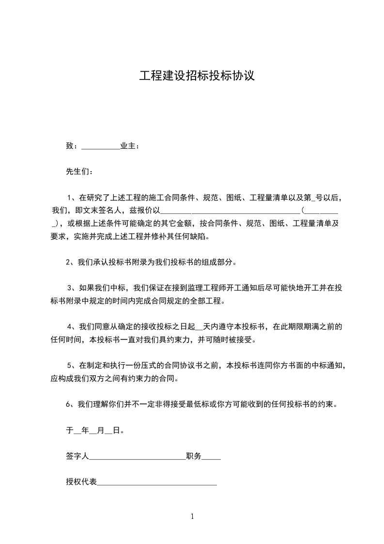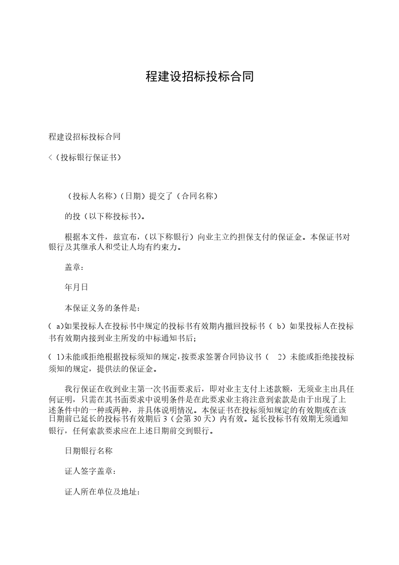 5、在制定和执行一份压式的合同协议书之前,本投标书连同你方书面的中标通知,应构成我们双方之间有约束力的合同。