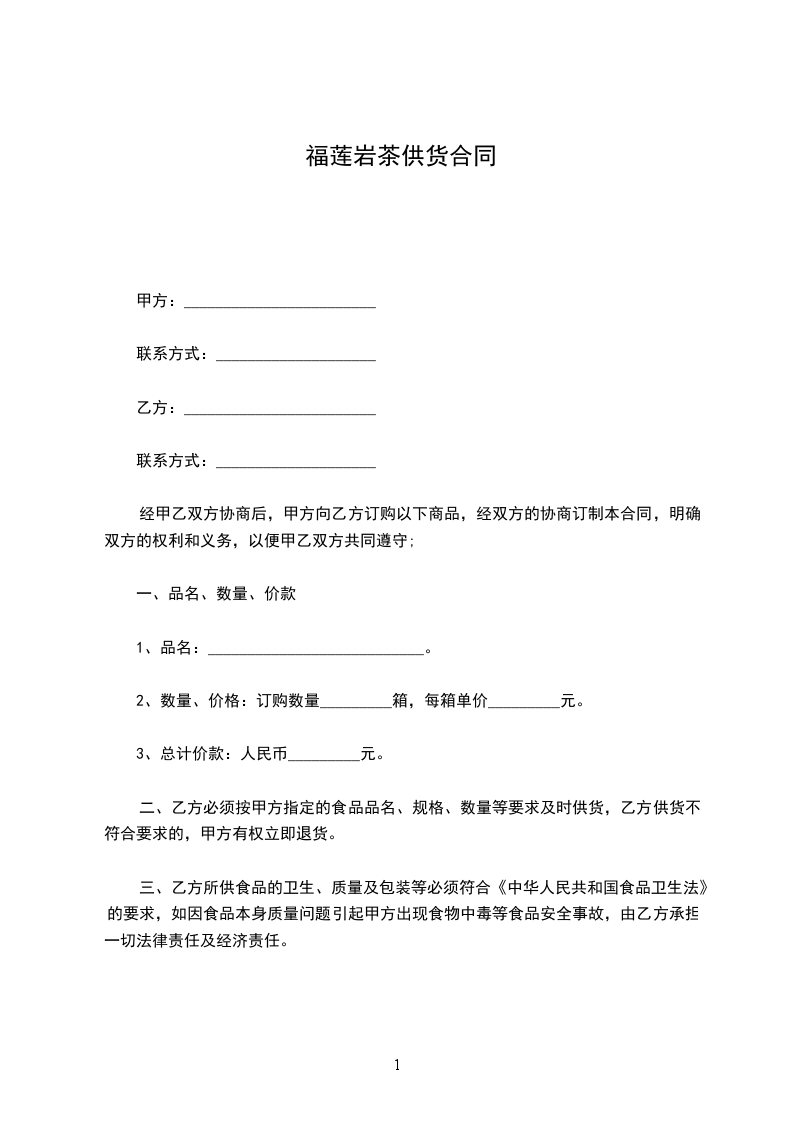 三、乙方所供食品的卫生、质量及包装等必须符合《中华人民共和国食品卫生法》的要求,如因食品本身质量问题引起甲方出现食物中毒等食品安全事故,由乙方承担一切法律责任及经济责任。