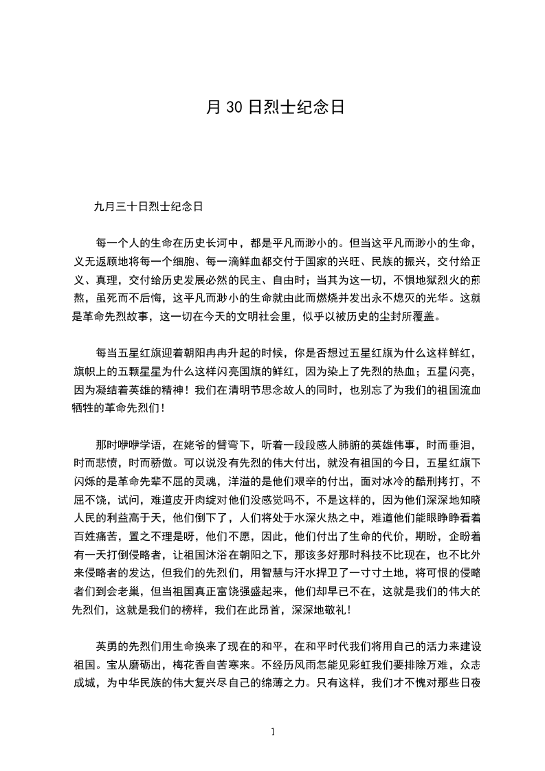 九月三十日烈士纪念日