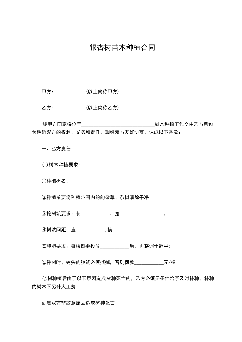 ⑦树种植后由于以下原因造成树种死亡的,乙方必须无条件给予及时补种,补种的树木不另计人工费: