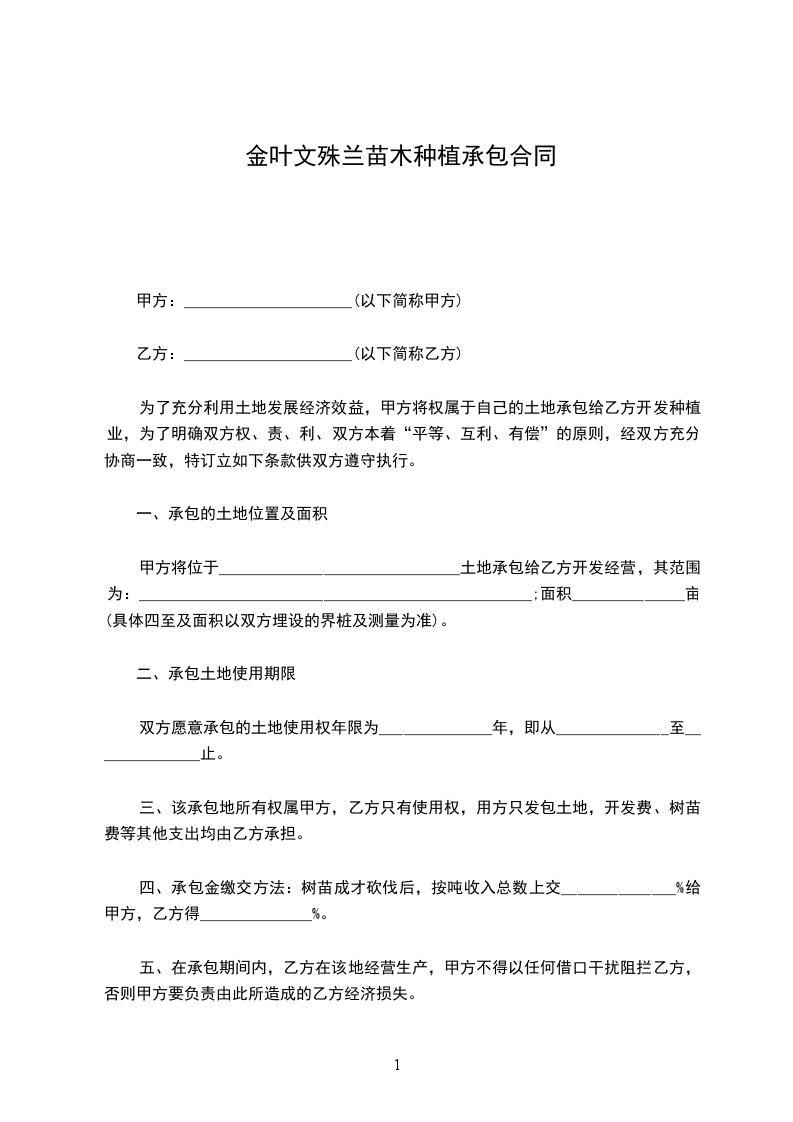 四、乙方应根据国家相关技术要求,及自身经验和苗木生长情况进行栽植,栽植完后做好养护工作。